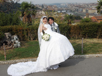 簡単なレポートではございますが、今後イタリアで挙式をお考えの方に少しでも参考になれば幸いです。イタリア・フィレンツェ郊外にあるサンタ・マリア教会で挙式を行うには、日本での結婚講座受講が必要で、ある程度の時間と労力が必要です。私達も初めは正直『めんどくさい・・・。』と思ったのですが、藤本さんに「結婚するってことは、それぐらい重要なことなのですよ!」と言われ納得(笑)。さんざん悩みましたが、この教会に決めて本当によかったです。私達の挙式&ハネムーンは10日間のイタリア、フランスの旅でした。成田からの直行便でミラノへ。約12時間の飛行でちょっと疲れましたが、イタリアの街が見えるとかなりテンションがあがり、はしゃいでました。そして私達、家族共に初ヨーロッパ!イタリア・到着(><)!!街全体がおしゃれで、すべてに感動しました。 |