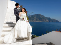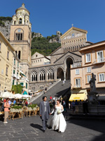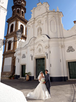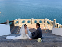 2008年10月13日、アマルフィ・カスティーリア教会で無事挙式をすることができました。今回は行ったことのなかった南イタリア方面の旅を希望し、候補を絞ったいくつかの教会の中から藤本さんのアドバイスや日程の関係で南イタリアのアマルフィにて挙式をすることにしましたが、訪れた場所の中で一番印象に残る場所になりました。(その後訪れた場所ごとに、アマルフィに戻りたい・・・と言っていた位です) |