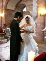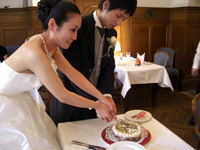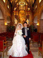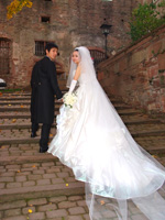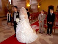 挙式前日に、挙式の地ハイデルベルグへ。「ツムリッタ」の100号室は、本当に素敵な部屋で、ホテル側からのシャンパンのサービスでさらに挙式気分が盛り上がりました。当日は生演奏のパイプオルガンの中、挙式が始まり、挙式後には、観光客や地元の方から祝福され一緒に写真をとったり、ドレスで城内を歩き周ったり、「ツムリッタ」でウェディング・ランチをしたり、かなり満喫しました。心配していたメイクやブーケ、写真写りについても、全く問題なく、大変満足なものにしていただき、感謝の気持ちで、いっぱいの一日でした。 |