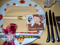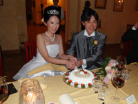 ウェディングディナーでは挙式、フォトツアーの話に花が咲き、トスカーナのおいしい料理を頂きました。ドレスや挙式のことで頭がいっぱいでウェディングケーキのことをすっかり忘れていたのでケーキが出てきた時には感動しました。また、家族にあてたサンキューカード、ウェディング新聞、両親の似顔絵を描いたメッセージボードや私たちの似顔絵の入ったウェディングクッキーをプレゼントしてその場の雰囲気がさらに盛り上がり、アットホームな素敵なウェディングディナーとなりました。 |