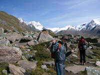 感動するくらいの快晴の中、私たちは妻の両親と共にマッターホルンを臨むトレッキングに出かけました。ハネムーンにはスイスを選んで正解と確信しました。目の前にそびえたつマッターホルンは、見る時間によって違う姿を見せてくれ、またツェルマットの村から雲一つないマッターホルンを一日中見られたのは本当にラッキーでした。トレッキングのガイドさんと共にエーデルワイスや、氷河も見ることができ、まさにスイスの自然の雄大美を堪能しました。夕食は、ストレーザに行っていた私の両親と再会しスイス料理を楽しみました。 |