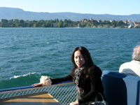 グリンデルワルトから宿泊予定のジュネーブに電車で移動し、荷物を一旦置いてニヨンに行きました。この街は人が少なく静かな町でしたが決して見どころが無いわけではありません。静かで美しい旧市街の町並みやニヨン城と呼ばれる美しい城があり、城や遊歩道からのレマン湖の眺めがとても素敵でした。レマン湖は琵琶湖くらいの大きさで、スイスとフランスの国境に位置します。小さな町も、中世の雰囲気がありレマン湖に溶け込んでいてスイスのまた違った魅力を感じました。その後、レマン湖を船で遊覧しながらジュネーブへ戻りました。この日は、眩しいほどの快晴だったので、とても気持ちよかったです。