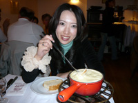 夜はジュネーブ郊外に足を伸ばし、言葉の壁があることも何とかなるだろうと旅の楽しさで前向きに考え、地元のチーズフォンデュを食べに行きました。しかし、クレジットカードが使えないお店と知らずに入り、スイスフランをあまり持ち合わせていない状況で妻が持っていたユーロが使えることにホッとしたというプチハプニングがありました。そのお店のチーズフォンデュがリーズナブルな値段でとてもおいしく、突然お誕生日会が始まったりする温かい地元密着型のお店で大変印象深かったです。ここのフォンデュは、今までのフォンデュの味をまさに覆されました。是非また行きたいお店の一つです。 |