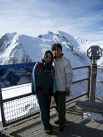 、世界各国から人々が集まってきます。乗り継いだロープウェイがさらに高度を上げ、3000mを超えたあたりでしょうか。ゴンドラの中で大きな歓声が上がりました。雲を突き抜けて上に出たのです。白銀の尾根伝いにモンブランを目指す人々が、ゴマツブのような黒い点に見えます。標高が高くとても寒かったにもかかわらず、すっきりした青空の中に輝くモンブランをいつまでも眺めていたい気持ちでいっぱいでした。 |