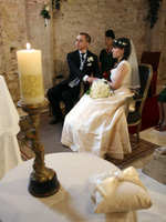挙式に関わる現地の皆さんがとても親切で、友好的に接してくださり、あたたかい雰囲気のもと、笑顔あふれる挙式となりました。ドレスの裾をさばけず、バージンロードをうまく歩けなかったり、キャンドルに小さなハプニングが起きたりしましたが、全て笑いに包まれて・・・(普通の挙式では笑えませんよね)。挙式後のシャンパンレセプションでは、マダムの息子さんの手作り料理が美味しく、日本に親しみのあるセレモニーマスターや、心配り素敵なアシスタントの八塚さん、ユニークなカメラマンさん方ともお話できて、とても楽しかったです。一つ一つが光る思い出です。