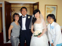 式後は毎日のように移動(笑)の旅でハードスケジュールでしたが心に残る旅になりました。またいつか2人でスペインに旅行に行きたいと思います。ホテルもみんな素敵な所を選んで頂きありがとうございました。大山さんやワタナベさんのおかげで大事な旅がもっともっと素敵な物になりました。式の日に大山さんからFAXも頂き嬉しかったです!式に出席してくれた姉夫婦も私達の式を羨ましがっていました。写真は私達と現地ヘアメイクの方とワタナベさん、パラドールのお部屋です。 |