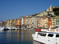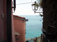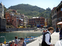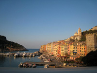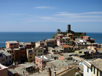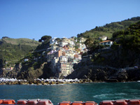 ポルトヴェーネレ、チンクエテッレは、イタリアに行くなら、フィレンツェやミラノといった王道の観光名所に加え、是非とも足を伸ばして行って欲しい所です。丁度訪れた時の天気が非常に良かったという点も、その印象を良くした一つの要因かもしれませんが、真っ青な空と海をバックにカラフルな色をした家が並び、その上に広がるブドウ畑はびっくりするほどの急斜面、とチンクエテッレ以外ではあまり見られないのではと思う少しユニークで、とても素敵な風景。 |