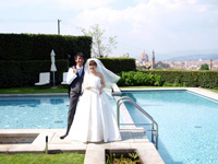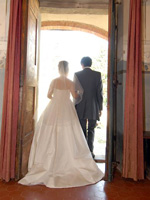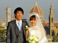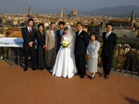 私たちはフォーマルウェディングだったので、ホテル、ミケランジェロ広場での写真撮影を終えた後、市役所でサインをしてから車で式場へと向かいました。式場へ向かうまでの車窓から見えるフィレンツェ郊外の風景はとても素晴らしく忘れることができません。また、車内で緊張している私たちに色々と話し掛けてくださり、場を和ませて下さった通訳の米山さんにも本当に感謝をしております。 |