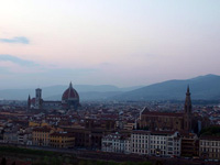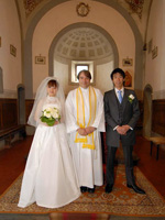 私たちはイタリアという長い歴史のある国にあこがれており、また派手な大きな式場ではなく、オリーブ畑に囲まれた田舎の小さな教会で挙式したい!という思いがあり、フィレンツェ郊外にあるサンタ・コロンナ教会で挙式することに決めました。今回の旅行は、4月10日〜19日まででしたが、出発前にイタリアの天気予報を調べていたらほとんど全ての日が雨!いくら、天気予報はあたらないとは言っても、少々落ち込み気味で出発の日を迎えました。しかし、4月14日の挙式日は、朝からとっても良いお天気!!いい意味で天気予報は当たらず、心から喜びました。 |