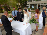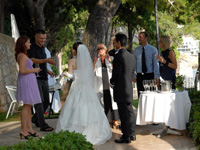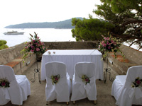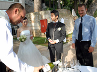 でも一点ここだけは、という感じですが「人生に二度ない経験」という結婚式に「人生に二度味わえない空間」というスペシャル感が架かる時、思い出は確かに究極的な輝きを見せました。今まで他人の結婚式は10回も20回も通い詰め、結婚式の項目も暗記できるほどみていますし、2次会の馬鹿騒ぎの楽しさも十分に味わいつくしてきたつもりでした。でも結婚式を「2人のためだけに」という点で純粋に突き詰めてみると、確かにクロアチアでの挙式は他に比類のないものでした。それまでの苦労をすべて忘れさせてくれるくらいの(実際ほとんどリージェンシーさんにお任せなので実は大して苦労もしてないのですが)、インパクトでいえば人生の瞬間最大風速、という感じです。 |