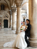 最後に、「アドリア海の真珠」と呼ばれる街は、実際のところ想像していたような浮ついたものではありませんでした。15年ほど前には戦火に遭い、砲弾が撃ち込まれ、石壁は黒く焼け焦げました。今でこそ飾りとしての美しさを誇る城壁は人々の命を守るために必要なものでしたし、その役目を果たして見る影を失った古都は一時「危機遺産」のリストにも名前を連ねました。ただその復興のために力を尽くし、その威容を再度つくりあげたクロアチア人たちには強い誇りを感じました。何人かのクロアチア人と話す機会があったのですが、「世界で一番美しい国」と自信をもっていましたし、高額の税金に文句を言いながらも国としての美しさには強い意思のようなものを感じました。そういった歴史や人々の想いがこもった場所で、自分の岐路となる式があげられたことは、非常にありがたいことだと思います。「ここで」挙式をしたことが、自分の人生に新しい縁をつくりあげてくれましたし、日本以外に故郷というか何か大事な気持ちを呼び起こしてくれる場所ができたことはとても貴重なことなのではないかと思います。 |