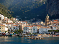 アマルフィからは少し離れますが、カプリ島の青の洞窟も見てきました!天候によっては入れないと聞いていたのですが運良く見る事ができて良かったです。見たことも無い位水が青色に光っていて本当に幻想的でした。あと挙式の前々日はアマルフィで年2回の内1回のお祭りだったようで、これも運良く参加する事ができました。夜は町中がイルミネーションに彩られて、大きな花火が上がり、教会前で小さなオーケストラの演奏が開かれて・・これも何とも幻想的でした。夜中の12時を回ってもお祭りが続きました。ここもせっかくなので眠気と戦いつつ楽しみましたよ〜!アマルフィでは挙式もあって3泊4日と滞在期間を多めにとって頂けたので、たっぷり堪能できたと思います。 |