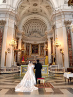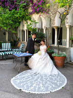 サンタ・トロフィメナ教会に決めたのは完全に一目惚れでした。イタリアといえば荘厳な雰囲気の本格的な教会。ここはもうイメージにピッタリでした。アマルフィ海岸にそびえる建物の美しい景色や、真っ青な地中海をバックに写真を撮れるのも大きな魅力でした。 |