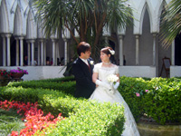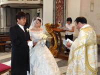 2009/6/29私たち夫婦は南イタリアのサンタ・トロフィメナ教会にて無事に挙式を挙げて参りました。山田さん、佐川さん、リージェンシー・グループの皆さん、現地のスタッフの方々には何から何まで大変お世話になりました!ありがとうございました!夫も私もイタリアの綺麗な町並みやおいしい料理・ワインが大好きで、この機会なので思い切って挙式はイタリアでしようと思っていました。といっても二人ともイタリア旅行は初。しかも6月に行こうと言いつつ、まともに計画をしだしたのは3月中旬という非常にアバウトな状態の中、山田さんには本当に頑張って頂いちゃいました・・・。
