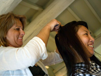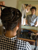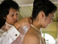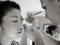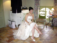泊まっている部屋の中でゆっくり、ヘアーセットからメイクアップ、着替えまで、とてもリラックスしてでき楽しい時間を過ごせました。その間、ず〜っと写真やDVDを撮っていて変な感じはしましたが、ちょっと芸能人になったような気分でとても気持ちが良かったです。 |