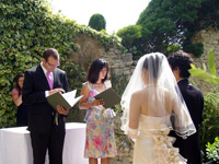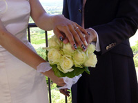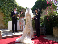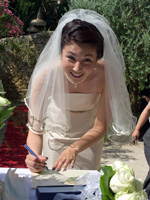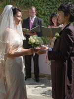 ホテルのオーナーからスタッフ、日本人スタッフ、長谷川さんなど多くの方々に見守られ2人で挙げたとは思えない程、にぎやかで温かいすばらしい夢のような挙式が出きました。ただ・・・非常に暑く、夫は顔から大粒の汗がダラダラたれていました。誓いの時など向き合った時、笑いが止まりませんでした・・・。 |