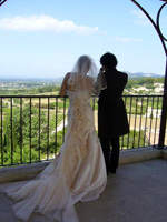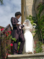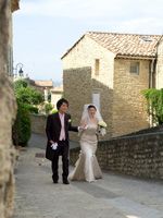 石畳の坂道と階段が多いので気をつけながら、絶景の場所へは2人で手を取り合いゆっくりと移動しました。挙式も印象的でしたが、この移動も良い思いでです。ヴァイオリンの生演奏の中、フランス語での式の進行は非常に雰囲気があり、夢の中にいるようで本当に幸せな時間を2人で過ごしているのだなと思っていました。 |