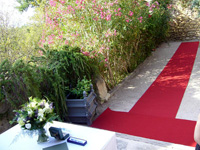 プロヴァンス様式のガーデンに神聖なバージンロードがひかれ。 |