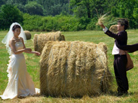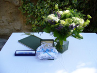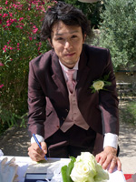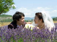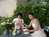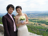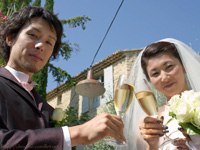 夫が建築の仕事をしている事もあって、ハネムーンは絶対にヨーロッパと決めていました。それも南仏の方に行きたいと。結婚式は旅行のついでに片田舎のどこかで簡単に挙げれればいいんじゃないという、漠然とした考えの中(現実は無理であったことを後で知ったのですが・・・)、海外旅行や挙式の資料請求をしていました。その資料の中にあった1枚のピンクのハガキがこのプロヴァンスでの挙式のモニターの案内でした。挙式の内容・時期なども2人の思いに完璧にはまっていたし、ハガキを持って行くとスタバのドリンク券がもらえるということだったので、買物ついでに話を聞きにいったのが全ての始まりでした。