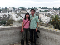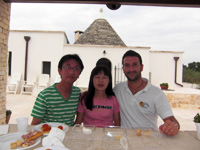 トゥルッロが立ち並ぶアルベロベッロは偶然にも年に一度のお祭りと重なり、普段は静かな町らしいのですが、行ってみるとたくさんの人で大変賑わっていました(お祭りの夜に花火大会があったのですが、何と真夜中の12時スタート!)。また、オプショナルツアーで自転車ピクニックツアー(10キロ近く走り、運動不足の私達には良い運動?になりました)に出かけました。途中でチーズ工場に立ち寄り、ガイドのアレッサンドロさんのトゥルッロの別荘でランチタイム。チーズもワインも美味しかったです。 |