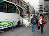 無事バルセロナの空港に降り立ち、日本語ガイドさんと落ち合います。駐車場に行くとびっくり!マイクロバス手配と聞いていたのに超大型バスがお出迎え!(此方は8人なので恐縮してしまいましたが・・・)手配していたアパートメントの最終契約を済ませるべく、バルセロナ市内にあるアパートメント事務所に赴き、唯一英語が喋れる妻とガイドさんがバスを離れました。ここでアクシデント発生!妻と一緒にいるガイドさんから電話があり、「乗っているバスですが別件で急用が出来たので目の前にあるカタルーニャ広場のカフェで15分程待っていてもらえませんか?」、とバスを降りるように言われてしまいました。心の準備もできないままガイドブック片手になんとかカフェで初注文。