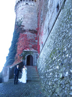 オデスカルキ城での挙式ですが、今振り返りますと全体的にとてもユニークで私達らしい楽しくて暖かい式になったと思います。心配していた挙式日のブラッチャーノとローマの天候も、青空の広がる気持ちのいい天気で移動や写真撮影もスムーズに進みました。オデスカルキ城に到着し私達がイタリア式のドラマティックな写真撮影をしている間は、家族と友人も城内ツアーとブラッチャーノ湖の美しさを満喫してくれていたようで、離れた場所で撮影していても親しい人たちの笑い声が城中に響き渡り、初冬の空気と相まって爽やかで和やかな空気が流れていたのを覚えています。 |