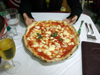 午前中はカプリ島で青の洞窟を堪能。あの青さはアメィジ−ング!船こぎの陽気な歌で気分も盛り上がりました。が、午後からはドシャ降り。。。でも、夜に食べたピッツァは大きくておいしかったです。さすが、ピッツァの本場ですね〜。 |