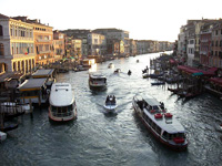 列車でベニスへ。水の都と呼ばれていますが、まさにその通り。島全体に水路が張り巡らされていて、町全体の雰囲気がすばらしかったです。 |