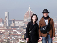 フィレンツェに着くと堀内さんが出迎えてくれました。「お疲れでないようでしたら。。。」と、早速ミケランジェロ広場へ連れて行ってもらっちゃいました。広場からみるフィレンツェの街並みがとてもきれいでした。その後は堀内さんと別れ、ドゥオモへ。夕日に染められた街並がとても綺麗でした。 |