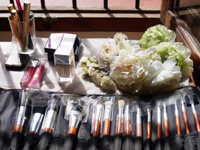 翌日は、早起きをして式の準備をしました。メイクは現地でお願いすることも考えたのですが、僕が挑戦してみたかったということもあり(手先が器用なことに自慢があったので)、行く前に何度も練習して、全て自分たちで行いました。これもまた、いい思い出になりました。 |