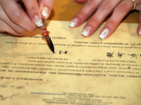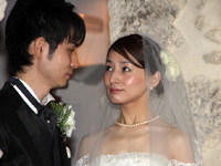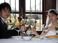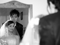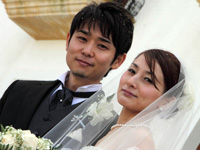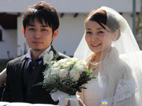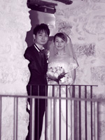 ジェットコースターのような楽しい式を終えてホテルに戻り、二人だけで記念撮影をしました。部屋に戻って、疲れてウトウトしていると、ニュースで僕たちの挙式の映像が流れ始め、びっくりして飛び起きました。しかもどの局でも放送しているのです。嬉しいやら照れくさいやらで、これは予想外の記念になりました。でも、テレビの取材というハプニングがなくても、ほんとうに素敵な式にだったと思います。町の人の温かさ、式の完璧な手配、はるばる来てくれた素敵なミュージシャン、スタッフの思いやり溢れる対応、どれを思い出してもほんとうにいい思い出です。 |