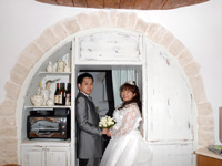 翌日は、ヘアメイクリハーサルにアントネッラさんと瀧本さんが来てくれたのですが・・・朝、雨が降っていて傘を差して散歩に行ったのですが、その後私たちは部屋の中に傘を広げて干していました。そして部屋のガスも切れていたのです。どうも寒いはずだと主人と納得しました。それで、部屋の中で傘を広げる事&ガスを部屋で交換することの両方がイタリアでは、縁起の悪いことだったらしくてトゥルッリを移動することになりちょっと慌ただしかったですが、移動したトゥルッリは改装したばかりで最初のところよりはちょっと狭いけど、かわいさは倍増でした。
