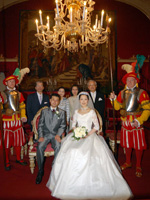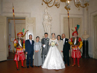サラ・ロッサでは市議や市役所職員の方が温かく迎えてくださり、終始和やかな雰囲気でした。実際に見る深紅の間は本当に豪華で、美しい装飾品や絵画などすべてが素晴らしく、もう少し結婚式が長く続いてほしいと思うほどでした。 |