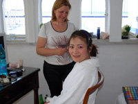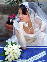 挙式当日、通訳の佐々木さんには大変お世話になり、何とお礼を伝えたら良いのか…。それほどに、彼女は素晴らしかったです。イタリアでのメイクやヘアの勝手がわからない私の質問にもひとつひとつ丁寧に答えて頂き、大変感謝しております。無計画な私は、不安ながらも、メイクもヘアもスタイリストさんにお任せしようと思っていたら、「是非そうしてください!!パトリシアもアントニオも、腕は確かです。お任せすれば間違いはありません!」というお言葉に、どれほど安心したことか!ヘアもメイクも手早く美しく仕上がり、日本では味わえない仕上がりに大満足でした。 |