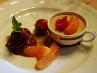 フォトツアーのあとは、ホテル・ザッハーにてウェディングランチです。挙式に参加した家族、またグルノーブルから駆けつけてくれた友人夫妻、そして山田葉子さんの楽しい会話とともに、とても美味しく、また見た目も本当にきれいな食事をいただきました。 |