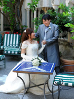 挙式終了後、ルナコンヴェントの計らいでシャンパンをご馳走していただきました。後にこのシャンパンが悲劇を招くのですが・・・(笑)。詳細についてはまた後日・・・色々な意味でお詫びしたいです(涙)。 |