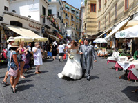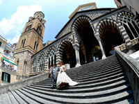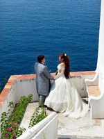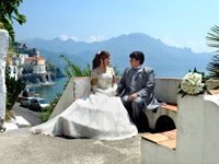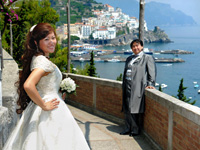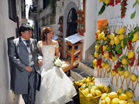 | 四日目は結婚式。朝、アマルフィへ向かう道で事故があったらしく、佐々木さんが遅れてくるという軽いトラブルはありましたが、現地のメイクさんとも何とか意思の疎通ができ、順調に進みました。