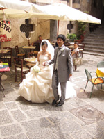 | 挙式後はフォトツアーへ。観光客がたくさんいる中でカメラマンさんから色々なポーズを注文され、最初は2人とも(特に主人が)かなり恥ずかしがっていましたが、慣れてくると自然と笑顔が作れるようになり、帰国してからいただいた写真には本当に幸せそうな私達2人の姿が写っていました。また通りがかる方々みなさんから、アグーリ!(おめでとう!)と声をかけていただき、海外挙式ならではの嬉しい体験をさせていただきました。 |