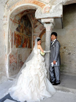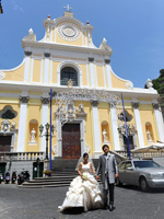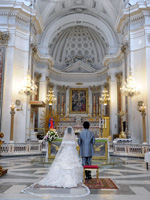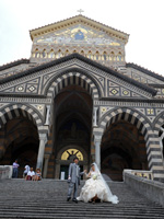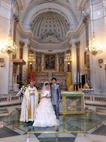 アマルフィで挙式をすると決めたとき、ここがいい!と一目惚れしたサンタトロフィメナ教会。教会に響き渡るパイプオルガンの音色に合わせ、父とヴァージンロードを歩き、主人と共に祭壇に向かい、優しい神父様に見守られ、世界遺産の中にある荘厳な教会での式は、本当に感動の一言でした。 |