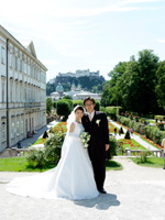 挙式当日はお天気にも恵まれ、快晴の空の下で挙式を行うことができました。カメラマンさんは朝から夕方までつきっきりで一生懸命写真撮影をして下さって、本当に感謝しています。 音楽祭ということもあり、庭園内も市内もいつも以上の賑わいだったと思うのですが、写真に人が写りこまないように時には強引な くらい必死で頑張って下さいました。 その甲斐あって、美しい庭園にまるで二人でいるかのようなショットが出来上がっていて、驚くばかりです。 両親と親戚、そして街のいろんな方々からの祝福をうけ、とても思い出深い挙式となりました。