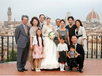 新婦のお母さん手作りのプリザーブドフラワーを使った髪飾りを使ってもらい、メイクはイタリア女性がしているメイクの