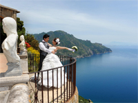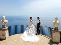 挙式後のフォトツアーは、当初、アマルフィかアマルフィ海岸の断崖の上に位置するラヴェッロのどちらか一方と言われていたのですが、”両方行きたい!”という欲張りな私たちの希望を叶えていただき、2箇所で撮影できるよう手配していただきました。 ラヴェッロでは、私たちの一番行きたかった念願の『ヴィラ・チンブローネ』に入り、眼下に美しいアマルフィ海岸を望む美しい庭園で撮影、またアマルフィではドゥオモを中心に、まるで映画のワンシーンのような写真を撮っていただきました。カメラマンのマッシモさんは、この辺りのベストポジション・ポージングを知り尽くしており、長時間最後まで妥協することなく撮り続けてくれたおかげで、出来上がった写真はとてもセンスがいいものばかりでした! 強い日差しの中、長時間重たいドレスとともに移動するのは大変でしたし、追加の料金もかかりましたが、すれ違った観光客やお店の方たちも皆温かく祝福してくれて、素敵な思い出と写真を残す事ができ、大満足でした。
