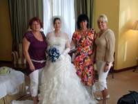 式に関して一番心配していたのがヘア・メイクでした。ぶっつけ本番だったのですが、伝えたイメージの通りにしていただき、更にはドレスは自分たちで着るように言われていたのですが、ヘア・メイクさんや日本語アシスタントさん達が当然のように着せてくれて、