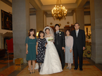 また、嬉しいハプニングもありました。神父様からのお言葉を頂くときに突然、同時通訳をしてくださっていた米山さんが戸惑う場面があり、後で聞いたら、「神父様がアドリブのお言葉を入れられたので驚いたんです。」とのことでした。そのとき頂いた言葉(私達のためになんでもしてあげたいというような内容だったと記憶しています)の温かさに、わたしは改めて、この教会で式を執り行ってもらい本当に幸せだと思いました。