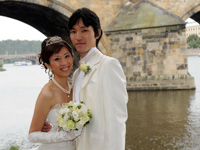 私たちの結婚式・新婚旅行をコーディネートしていただいたのは、佐川さんでした。思い起こすと、最初の出会いは、私たちの「突然訪問」でした。どこの代理店がいいのか全く情報のない私たちは、「とりあえず行ってみよう。」という、安易な考えでリージェンシー・グループさんの事務所を伺いました。そこでご対応いただいたのが佐川さんでした。今では、それも一つの縁だと思っております。それでは、私たちの結婚式・新婚旅行の一部を以下、お伝えいたします。かなりの日数が経ってしまいましたが…。 2010年9月14日、私たちは、プラハの聖ミクラーシュ教会で結婚式を挙げました。2日前の12日に到着し、14日までの2日間、観光をしたり、現地スタッフの井口さんはじめ、メイクアップアーティストの方々や牧師さんと打合せをしたり、初めてのプラハでの興奮冷めやらぬ2日間でした。 そして、ついに9月14日。聖ミクラーシュ教会での挙式当日。 朝ホテルの部屋にブーケとブートニアが届き、いよいよ結婚式が始まるのだなという実感がわきました。ヘアセット、メイクが終わり、ホテルのエントランスまで、メルセデスベンツがお出迎え。ステキです。教会に到着すると、早速撮影会。ここではモデル気分です。が、神聖な、また特別な雰囲気の中で、表情が硬くなってしまったのは否めません。モデルへの道のりはまだまだです。 そうこうしているうちに、挙式の時間がやってきました。豪華なシャンデリアの下、バージンロードをゆっくりと歩き、牧師さんの前まで進みました。誓いの言葉・指輪交換、最後は結婚証明書へのサインをして、幸せへの契約を交わしました。退場する時は、緊張感からの解放と、「ついに夫婦になった」という新たな緊張感でちょっと複雑な気持ちでした。 |