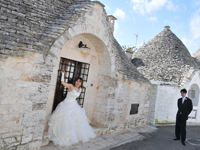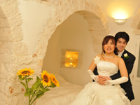でした。 はじめてお邪魔した時に、私自身、イタリアの治安に少々不安がありましたが、炎のような熱いパッションのサルヴァトーレさんのプレゼンに 大分、気持ちを持っていかれました(笑)何度か打ち合わせを重ね、我々も気持ちが高ぶり現地に行ったら、それは素晴らしいものでした。常に私のビンボー旅行は、公共機関の乗り物しか使わなかったので、ワイフもいるし荷物も沢山あったので、送り迎えは大変、助かりました。 ドライバーさんもとても紳士的な方でした。 そしていざトゥルッロに入ってみると外は若干、寒かったのですが、暖色系の照明もあってか何故か身も心も温かくなりました。初日は着いた時間も遅かったので、直ぐに就寝しました。 そして翌朝、朝食を取りにレストランに行ったのですが、道が蛇行しているせいかよく分からず地図を見てキョロキョロしていたら、近くにいたおじさんが「何処に行くの?」と英語で話かけてきてくれて、その瞬間、私の中のイタリアのイメージがとても良くなりました。 食事を済ませトゥルッロに戻りリハーサルとなり、イタリア人のスタイリストの為、最初、ワイフは少々緊張していましたが、現地の瀧本佳世さんにも親切にして頂きとても和やかにできました。私は何故か思ったほど暇では無かったです。 そしていざ当日、日本の挙式だと厳粛なイメージがありましたが、現地の方たちのおもてなしがあったからでしょうか、ここでも何か温かい気持ちになるものがありました。 チャペルは、マッセリア(大農園)が運営されているのか、動物が沢山いてのどかな雰囲気で景色もよくとても素敵な場所でした。挙式も概ね滞りなく終わり、フォトツアーに参りましたがポーズのとり方など日本人の感覚には無いものでした。挙式の前にトゥルッロの中でも沢山撮影しましたが、かなり照れくさかったです。でも実際写真を見てみるととても素晴らしく、撮って良かったです。年賀状でも写真を使いましたが、なかなかの評判だったようです。 |