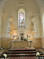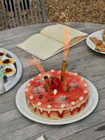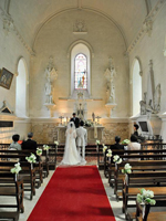 | 妻も念願のバージンロードを最愛のお父さんと歩くことが出来、大満足のようでした。その後はパトリスさん、八塚さんのリードのもと、感動的なフランス流の結婚式を無事に終えることができました。この感動は一生忘れることがないと思います。結婚式後はお城の中で写真撮影をした後、中庭で簡単なパーティを開いて頂きました。村一番のパン屋さんにイチゴのケーキまで用意して頂き、感謝感謝です。結婚式当日のディナーの頃には両親もすっかり緊張から解放されて、前日にも増して美味しい料理を戴くことが出来ました。 | |||||