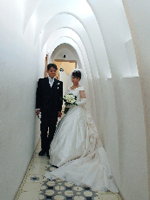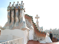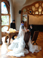 | カサバリョで、ウェディングをあげられたこと は生涯の思い出。夜の照明に飾られたカサ バリョはおとぎの屋敷のようです。新婦はグエル公園がお気 に入り。まるで絵の具の青色で塗 られたような澄み 切った空の下広大な公園を散歩できた ことを喜んでいます。 | |||||