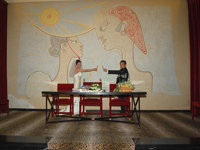 壁画の説明や、フランスの古い諺では雨の日の挙式は縁起が良いことなどを教えて頂きました。
