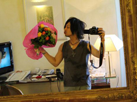 | 早朝、現地の方が部屋にみえて、ヘアーセットとメイクアッフ゜をして頂きました。現地の方からみる日本人のイメーシ゛なのかな?多少は修正して頂きましたが、挙式まで時間も無かったのでややキツイ顔立ちに…。新婦は「それも思い出」と割り切れるタイフ゜なので、気持ちを切り替えていましたが、新郎の性格ならば、挙式中の笑顔が引き攣っていたでしょう。(笑)ヤハ゛イくらいおいしい朝食も忘れず頂き、とびっきりのト゛レスとタキシート゛に身を包み…日本の友人からのサフ゜ライス゛フ゛ーケと、山田さんからのサフ゜ライス゛レターで、ウ゛ォルテーシ゛MAX!!!いざウ゛ェッキオ宮殿へっ!!! |